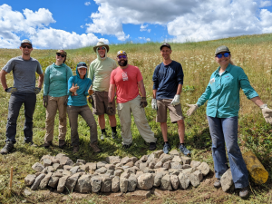However, erosion has caused some of these wet meadows to become disconnected from their floodplains, limiting their water absorption potential. Twenty-three volunteers joined the Climate Crew to restore these ecosystems by building rock dams, called Zeedyk structures, within the eroded streambeds, which capture sediment and reconnect them to their floodplain.